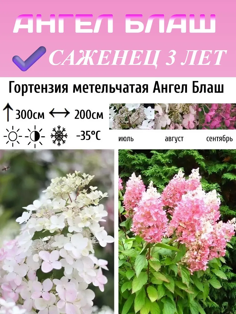 Гортензия метельчатая Ангел Блаш - это роскошный многолетник, который станет настоящим украшением вашего сада. Этот зимостойкий сорт порадует вас пышными, крупными соцветиями нежного розового цвета. Саженец гортензии Ангел Блаш, возрастом 3-4 года, с открытой корневой системой, поставляется в контейнере D10 и готов к посадке. Благодаря среднему сроку созревания, этот сорт цветет обильно и продолжительно, создавая в вашем саду атмосферу уюта и красоты. Гортензия Ангел Блаш станет прекрасным дополнением к декоративным деревьям и кустарникам, создавая живописные композиции на вашем участке.