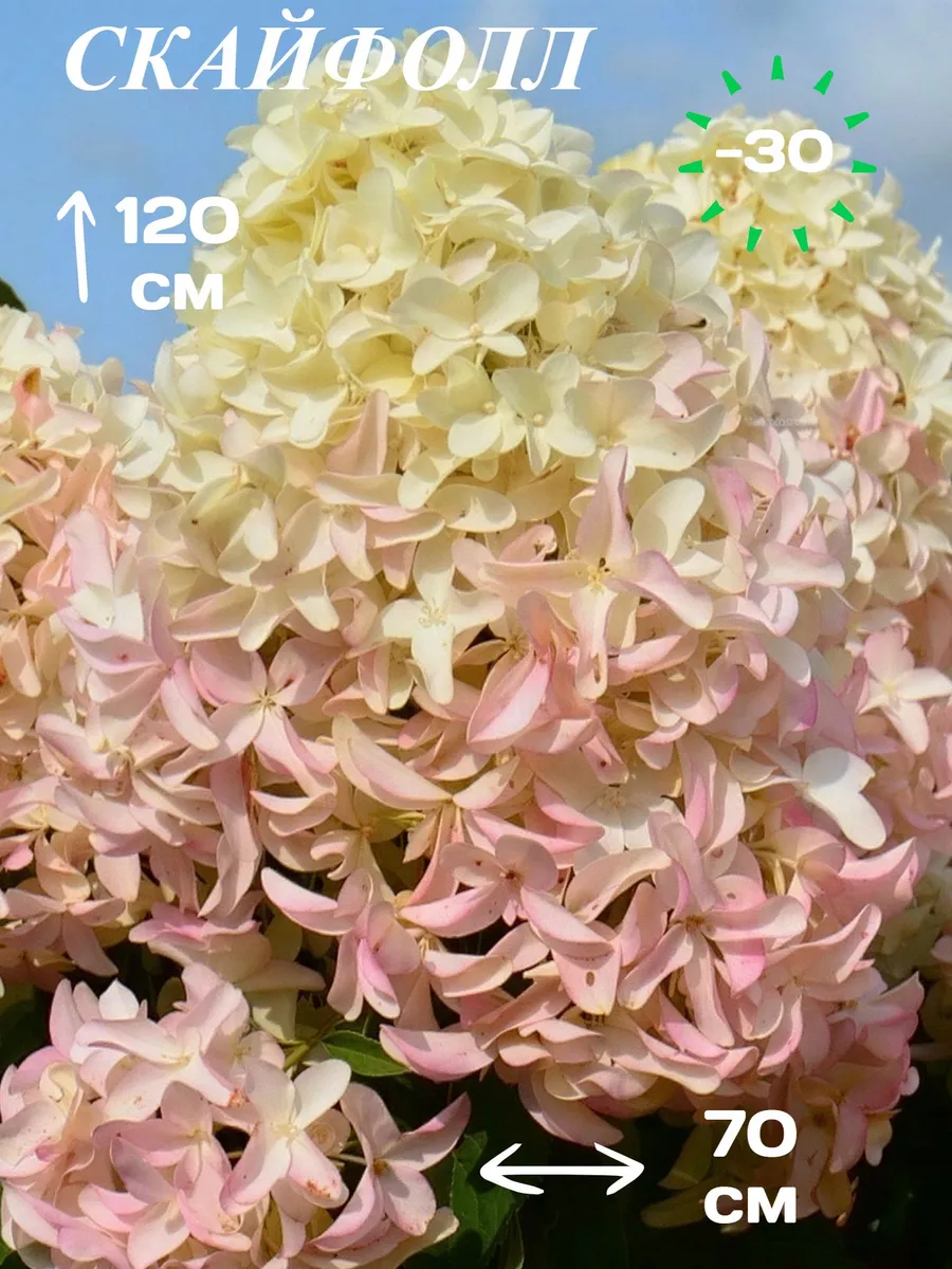 Гортензия метельчатая Скайфол - это прекрасный выбор для тех, кто желает украсить свой сад геоцинтовыми белыми соцветиями. Этот сорт гортензии отличается своей неприхотливостью и обильным цветением, которое радует глаз с середины лета до осени. Крупные, конические соцветия похожие на геоцинт, Скайфол имеют нежный белый цвет, который придает саду особую элегантность. Этот сорт гортензии отлично подходит для одиночных посадок, а также для создания живых изгородей и групповых композиций. Гортензия метельчатая Скайфол неприхотлива к почвам и условиям выращивания, что делает ее идеальным выбором как для опытных садоводов, так и для начинающих. Сорт хорошо переносит полутень и засуху, что позволяет выращивать его в различных регионах.